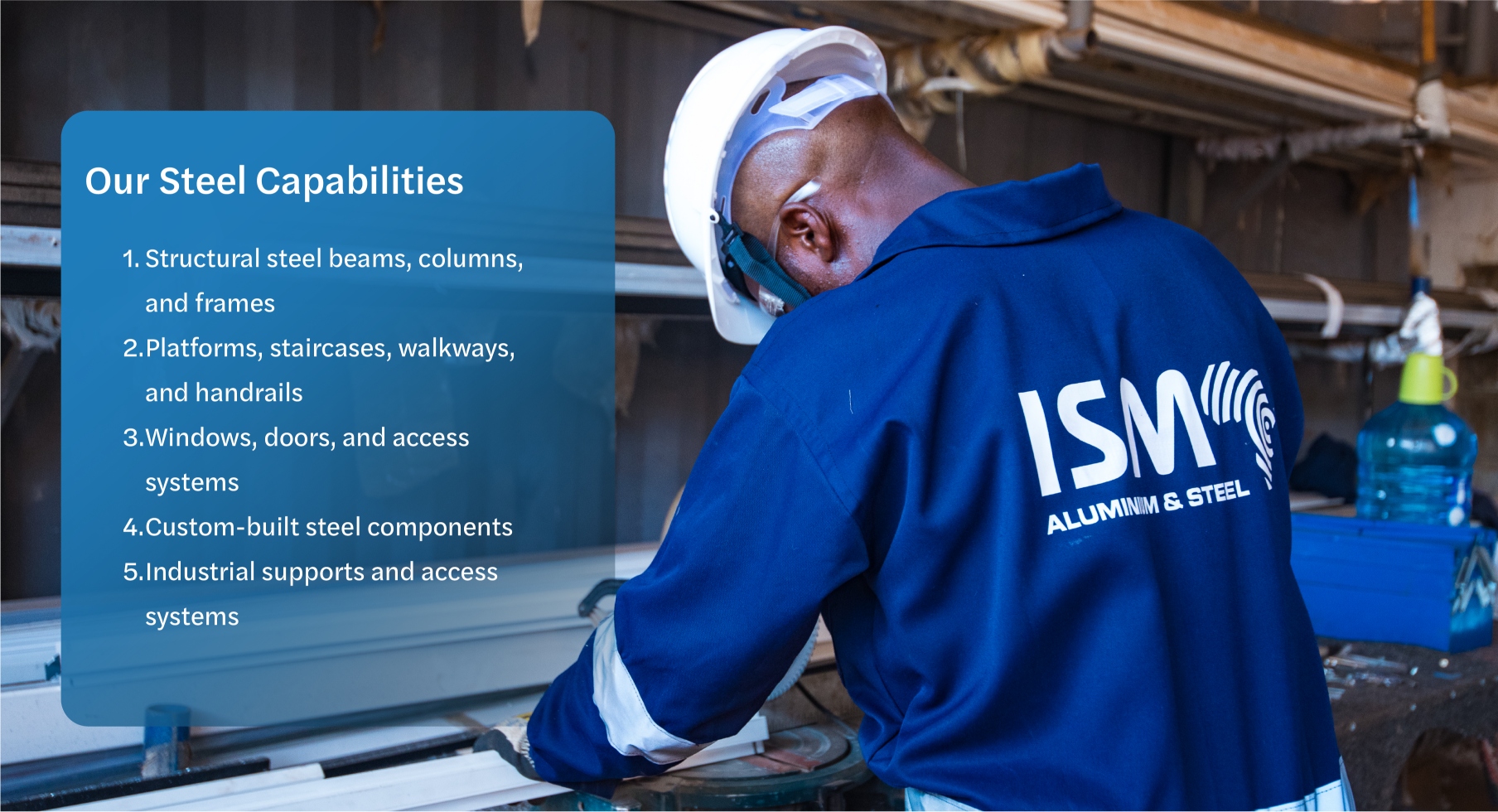 ISM AluSteel specializes in steel and aluminium fabrication for commercial, industrial, and residential applications. As part of the ISM Africa Group, we deliver precision-engineered metal solutions—from design and technical drawings through to fabrication and on-site installation.